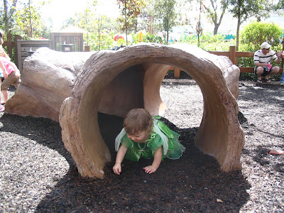 Savannah at Pooh's Thoughtful Spot. She loved playing in this log.